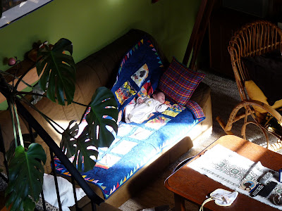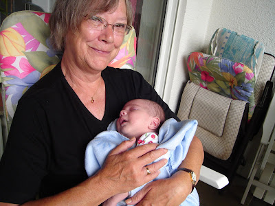 Então, como temos pouco tempo para nos mudarmos para Aachen, tínhamos que começar a procurar um apartamento por lá e na segunda decidimos viajar até a casa de meus sogros, que fica mais perto da cidade. Claro, não foi fácil nos prepararmos para uma viagem tão longa, tendo que nos lembrar de tudo que poderíamos precisar para ficar uma semana (ou mais) longe de casa com um bebê tão pequeno. Também temíamos que o Daniel pudesse não gostar de ficar no carro pelas mais de três horas que a viagem leva, mas ele levou numa boa e dormiu a maior parte do tempo. Desde então estamos na casa dos meus sogros. O Daniel se sente em casa no novo ambiente, e meus sogros têm curtido seu neto, tanto quanto ele os tem curtido :) O Daniel também se encontrou com vários parentes e amigos da família da Kathrin, que aparecem o tempo todo para dar uma olhada - e que sempre saem convencidos de que ele é uma gracinha, ainda mais em pessoa :)