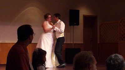 Por fim, ontem ele parecia estar bem o bastante para que pudéssmos levá-lo ao casamento de uma amiga da Kathrin do ensino médio. Claro, ele ficou com fome bem quando a cerimônia estava para começar e de novo quando esperávamos o jantar. E ele também passou um tempo indeciso sobre se queria dormir ou comer - caindo no sono quando tentávamos alimentá-lo e reclamando assim que voltávamos à festa. Com exceção disso, mais uma vez ele levou toda a agitação na boa, dormindo boa parte do tempo. ;)
