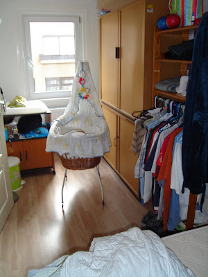 Na quinta de manhã, a Kathrin e seus pais chegaram a Aachen com o Daniel e passaram o resto do dia limpando, instalando luminárias, etc. Só no início da noite o caminhão da mudança tinha sido esvaziado. Meus sogros voltaram para Kirchberg pouco depois e o resto de nós permaneceu no novo apartamento, no meio de uma enorme bagunça de caixas e móveis, meio sem saber o que fazer... ;-) Nessa primeira noite demos um jeito de desenterrar apenas a cama do Daniel, o trocador e outros items mais vitais. Desde então, temos feito um progresso lento, mas razoavelmente constante, no esforço para tornar o lugar mais habitável, embora ainda haja muito trabalho a fazer - montar coisas no banheiro, montar móveis novos, abrir muitas e muitas caixas... O Daniel tem levado a bagunça numa boa - contanto que lhe dêem comida quando ele está com fome e que ele possa chutar, praticar seus novos "grrr"s e outras 'palavras' e dar suas risadas com seus pais e a vovó, seu mundinho aparenta estar 100% ok.
