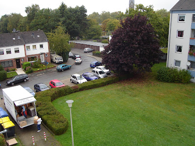 Na quarta tivemos que deixar o Daniel com meus sogros mais uma vez, agora para ir para Aalen supervisionar os caras da mudança enfiarem tudo o que temos no caminhão, limpar o apartamento vazio e dizer um adeus definitivo ao nosso antigo lar. Pelo menos dessa vez o Daniel já estava bem à vontade em Kirchberg e ficou o dia todo brincando e rindo com a 'Oma' e o 'Opa', aparentemente sequer notando nossa ausência. Só voltamos de madrugada e, enquanto a Kathrin passou o resto da noite em Kirchberg para amamentar o Daniel, eu e minha mãe fomos direto para Aachen nos certificarmos de que tudo estivesse pronto para mudança (a Kathrin já não tinha mais a bomba, que devolvemos quando deixamos Aalen).