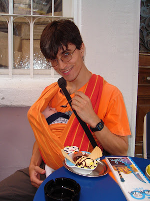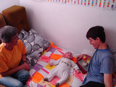 Curtimos fazer uma pausa e passar um tempo na tranquilidade de casa. Apesar de que nesse último fim-de-semana não foi assim tão tranquilo, com o festival local, Reichstädter Tage, incluindo música em altíssimo volume bem em frente ao nosso ap. até depois da meia-noite. (O festival não tinha nos incomodado no último ano mas dessa vez foi mais difícil de aguentar, em parte por ser mais perto do apartamento, com música mais alta e de estilo mais agressivo, e em parte porque não havia um canto mais quieto em casa onde pudéssemos colocar o Daniel.) Mas, com exceção disso, tivemos tempo o suficiente para curtir o Daniel, observar ele crescendo, praticar seu sorriso, chutar e se esticar e observar ele a nos observar, além, é claro, de ter umas discussões mais sérias, sobre o esforço do Obama para reformar o sistema de saúde americano e sobre umas manchas de tiramisu nas nossas roupas... ;-)