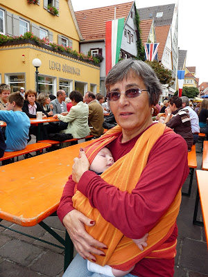 O Daniel teve então alguns dias para curtir pela última vez seus cantinhos favoritos do antigo apartamento, como o trocador e o "cobertor de exercícios" sob o piano, brincando e "conversando" bastante. Finalmente na quarta aproveitamos a última chance, antes de deixar Aalen definitivamente, de reencontrar os amigos - do meu curso de alemão e do antigo trabalho da Kathrin.