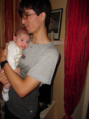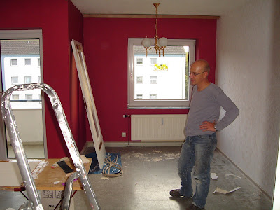 O resto da semana foi uma provação para o pobre Daniel: depois de mais uma viagem a casa da Oma e do Opa (seus avós alemães), ele "perdeu" os pais e a vovó por dois dias e uma noite, enquanto fomos a Aachen preparar o novo ap antes da mudança. Mesmo com a Oma, o Opa e o resto da família ficando bem felizes por revê-lo e tomando conta dele carinhosamente, o Daniel ficou bastante impaciente e chorou bastante, aparentemente sentindo muita falta de alguma coisa... Felizmente, com muita ajuda dos amigos com a pintura e o papel de parede, e tentando correr com a reforma (por exemplo, apagando com borracha o pior das sujeira da parede, para uma só mão de tinta bastar), não tivemos que ficar longe do Daniel por ainda mais tempo e pudemos curtir a "longamente esperada" ;-) reunião de nossa pequena família já no sábado à noite. Mesmo sem falar ainda, o Daniel encontrou um jeito de nos dizer, numa linguagem universal (e com muita saliva) o quanto ele sentiu nossa falta... ;-)