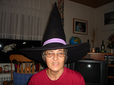 No sábado já era hora de voltar para Kirchberg - para ficarmos mais perto do aeroporto e para irmos à festa do Dia das Bruxas de uma amiga. Sem espaço o bastante no nosso carrinho para todos nós mais a bagagem, embarcamos na nova aventura de viajar de trem com o Daniel. Deu um bocado de trabalho carregar tudo o que precisávamos para o Daniel e nós mesmos. Mas demos um jeito e até conseguimos nos divertir com um jogo de cartas num dos trens. Chegamos sãos e salvos à casa da "Oma" e do "Opa" e, enquanto o Daniel passava um tempo com seus avós alemães, fomos ser "enfeitiçados", embora alguns de nós não tenham realmente saído de lá vivos... ;-)