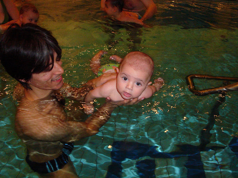 E o Daniel finalmente voltou às suas aulas de natação - dessa vez de novo comigo na água. Infelizmente ele pareceu ter esquecido o quanto ele gostava disso antes e ficou lá, só boiando, meio perdido...