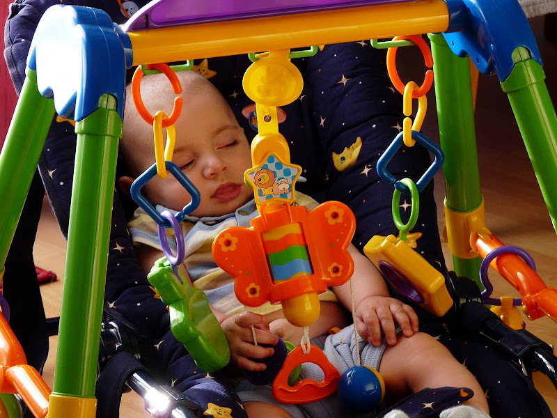 A propósito, caso alguém já tenha se perguntado se essa rotina agitada cansa o Daniel, podemos dar uma resposta bem embasada: estivemos mantendo uma tabela com os horários de sono e vigília e ela mostra claramente que ele não parece ficar cansado de modo algum. Enquanto crianças de sua idade dormem em média pelo menos 14 horas por dia, o Daniel parece se contentar com cerca de 11 horas e meia! É ainda um valor normal mas obviamente um tanto exaustivo para seus pais... Então aproveite essas fotos dele dormindo pacificamente - elas são muito raras... ;-)