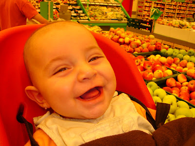 Naturalmente há também a costumeira quota de fotos e filmes engraçadinhos do cotidiano: o Daniel sentando/rindo/babando, esperando pacientemente no escritório da Kathrin enquanto o papai e a mamãe resolvem a tarefa do curso de alemão, indo às compras, posando para fotos de família com nossa "bola de Natal" habilidosamente decorada... ;-)