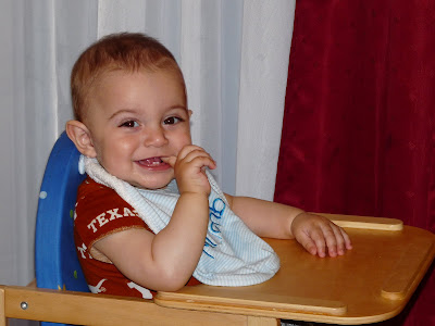 Não tão divertida é a questão da alimentação. O Daniel lentamente tem se acostumado a comer mais comida sólida, mas muito, muito lentamente, e ele continua bastante exigente. Enquanto ele parece gostar de comidas fortemente temperadas perfeitamente inadequadas para crianças de sua idade, comida de bebê ele quase sempre hesita em aceitar. E mais difícil ainda é fazer com que ele beba algo que não seja leite - embora ele adore o copo infantil dele, ele prefere mastigar o bico ou bater o copo contra a mesa a de fato beber dele...