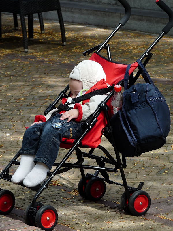No sábado tivemos um belo dia ensolarado para nosso passeio em Amsterdam. Tendo deixado o carro naquele que é provavelmente o estacionamento mais caro da cidade - próximo à estação ferroviária - passeamos pelas ruas comerciais, calçadões e sobre os canais, passamos por milhões de bicicletas estacionadas e procuramos pelo distrito da luz vermelha... ;-) O Daniel, como de hábito em passeios por lugares completamente desconhecidos, parecia chocado, sentado imóvel no carrinho, às vezes tirando um cochilo, sobrecarregado por tanta informação. Só nas poucas ocasiões em que podia sair do carrinho e tocar as coisas com as próprias mãos, ele voltaria a ser curioso e aventureiro. Claro, um passeio que dura o dia todo apresenta certos desafios, como encontrar um canto suficientemente discreto no Subway para amamentar, vestir o Daniel no porta-malas do carro ou trocar suas fraldas numa rua transversal mais calma... À noite estávamos exaustos e mal conseguimos sair para uma janta rápida, olhar os coelhos saltando entre os arbustos em frente ao hotel e ir dormir cedo o bastante para ir com minha mãe ao aeroporto na manhã seguinte.